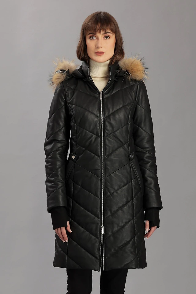 STEPHEN FABRIC PUFFER COAT W/RACCOON FUR ON HOOD