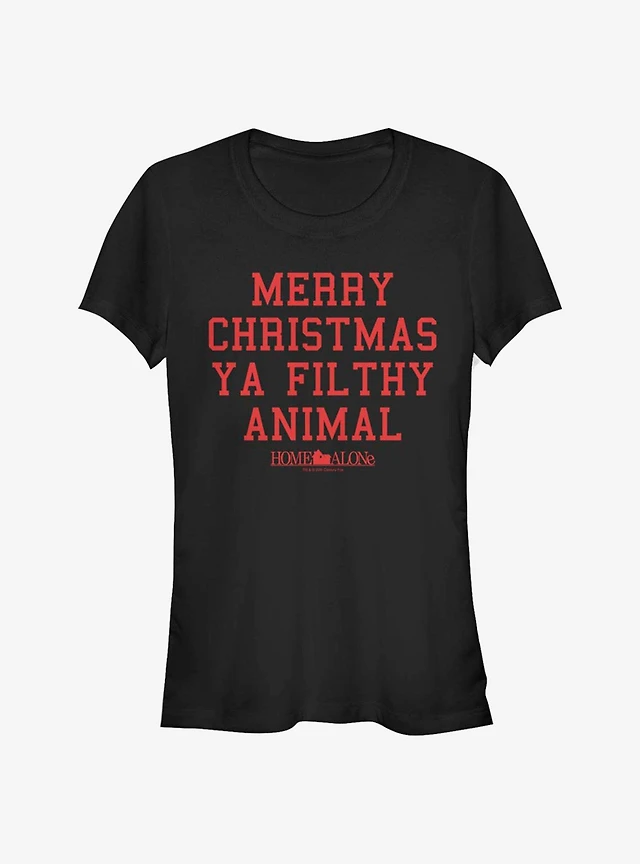 Home Alone Merry Christmas Ya Filthy Animal Text Girls T-Shirt